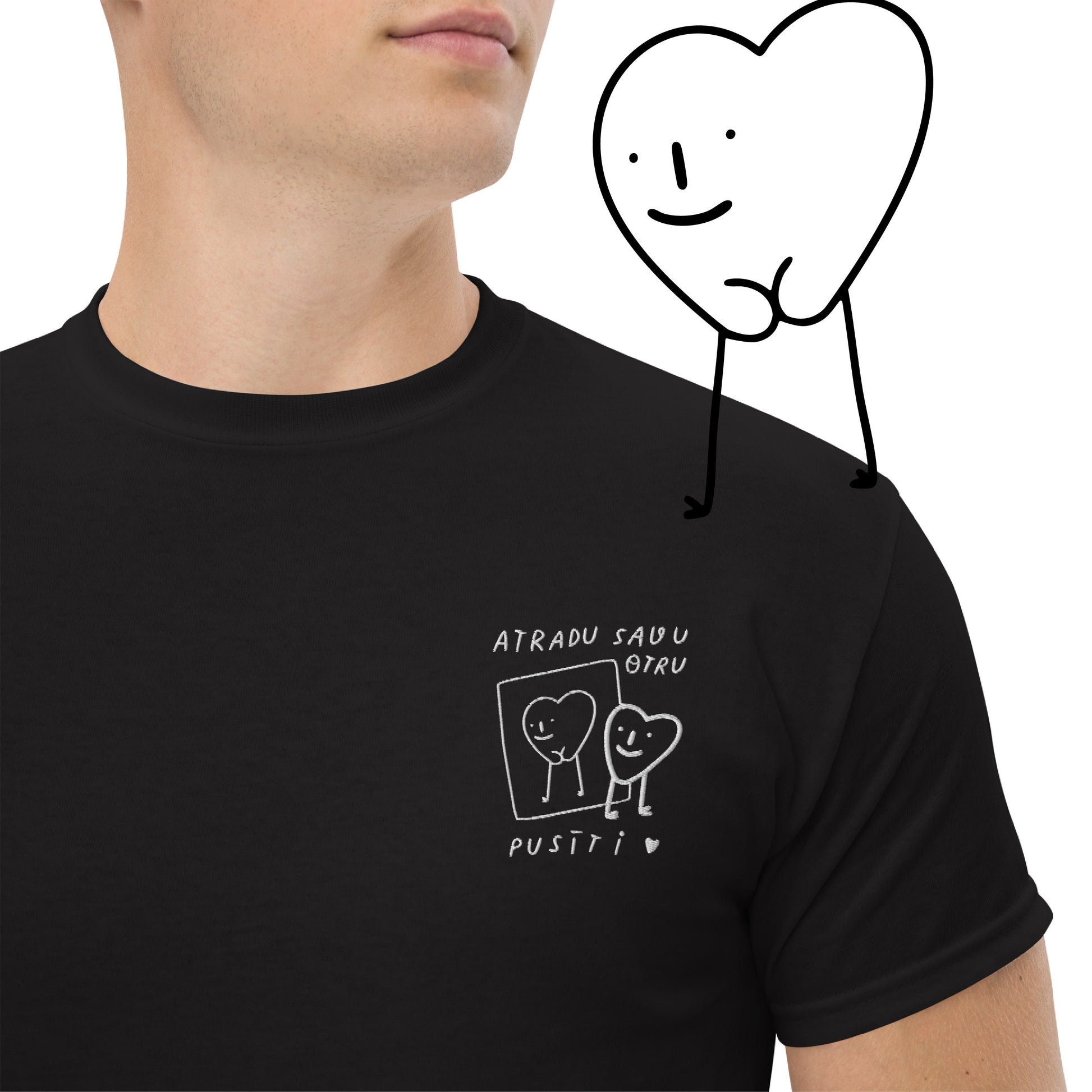 - Dizains uz t-krekla ir izšūts, nodrošinot ilgnoturību