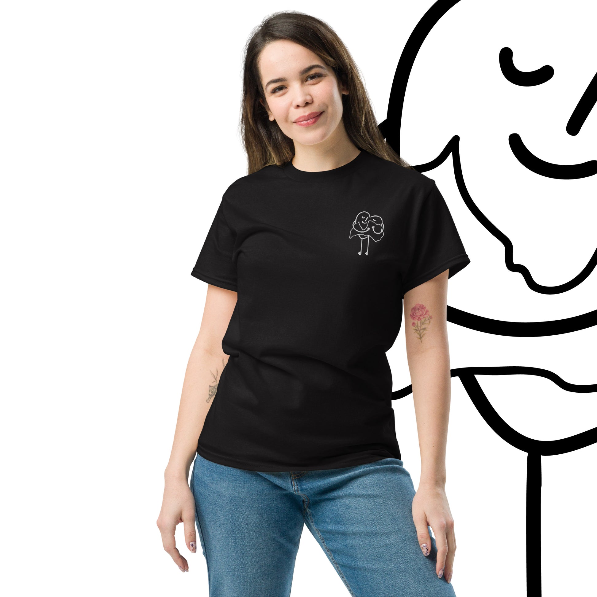 - Dizains uz t-krekla ir izšūts, nodrošinot ilgnoturību