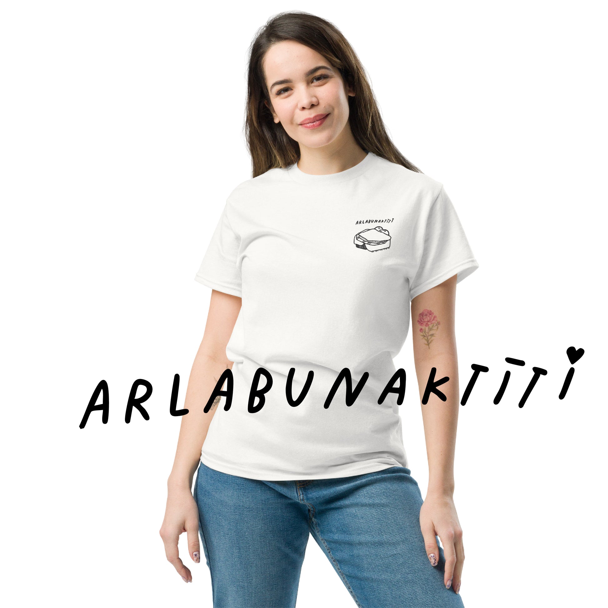 - Dizains uz t-krekla ir izšūts, nodrošinot ilgnoturību