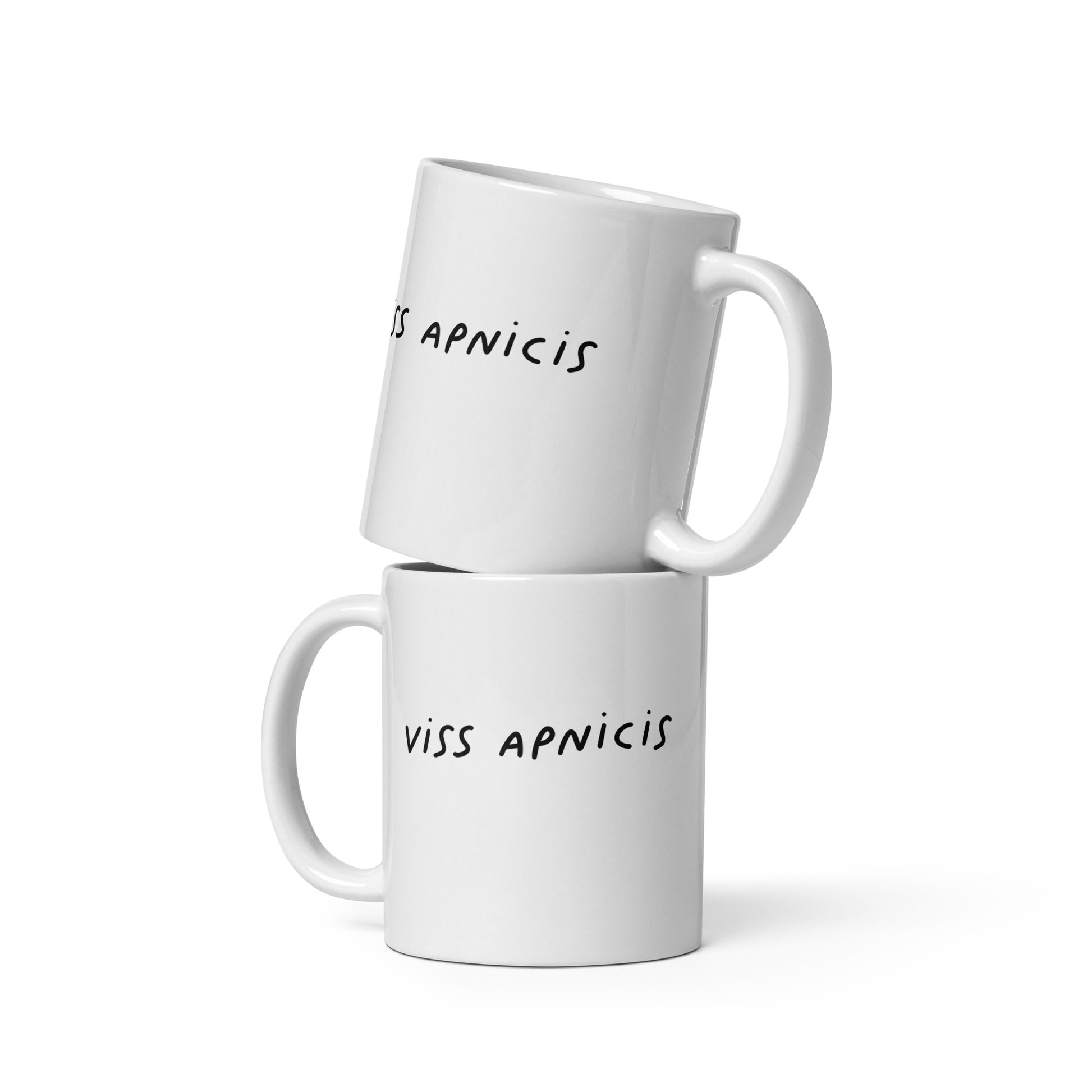 - Balta keramikas krūze ar spīdīgu pārklājumu