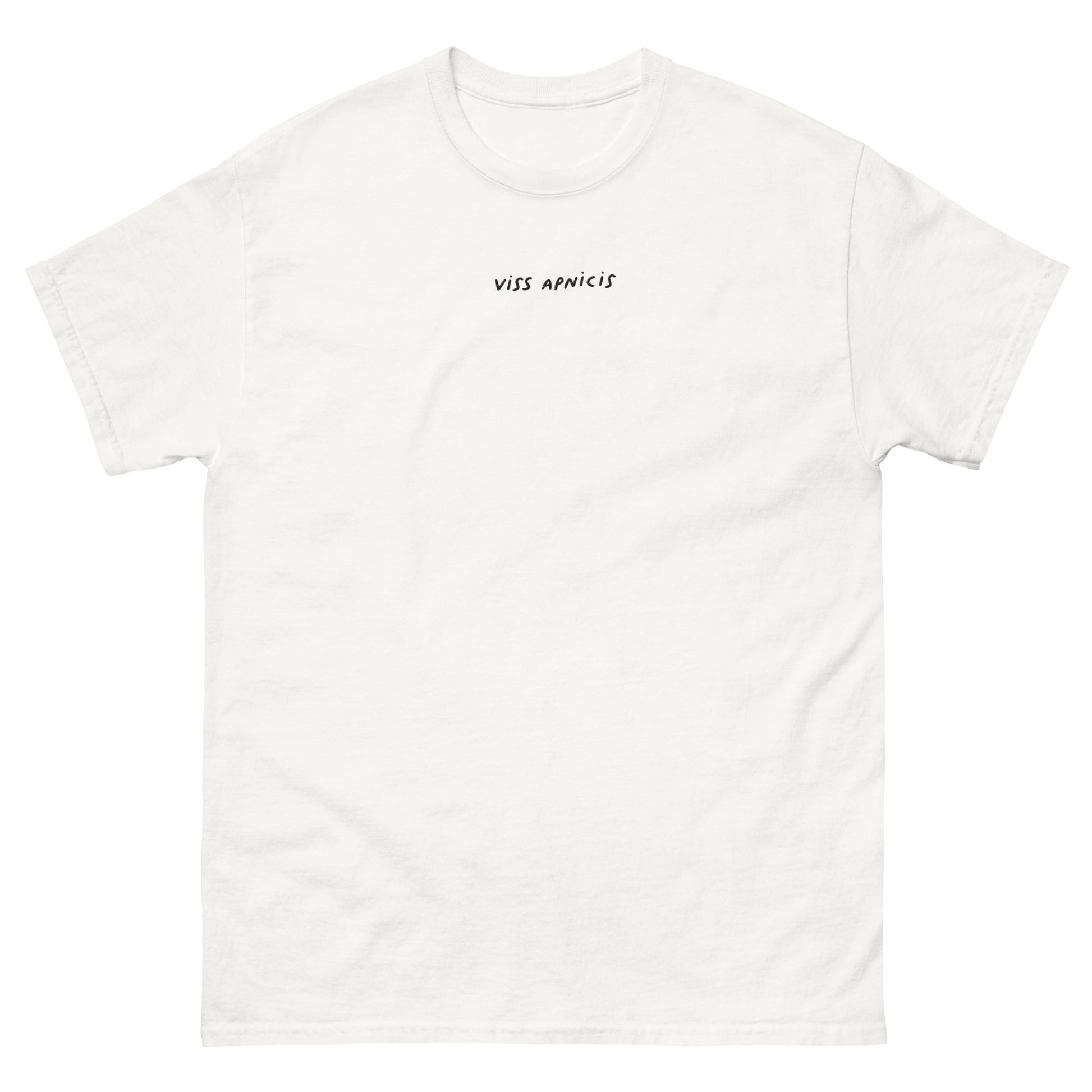 - Dizains uz t-krekla ir izšūts, nodrošinot ilgnoturību